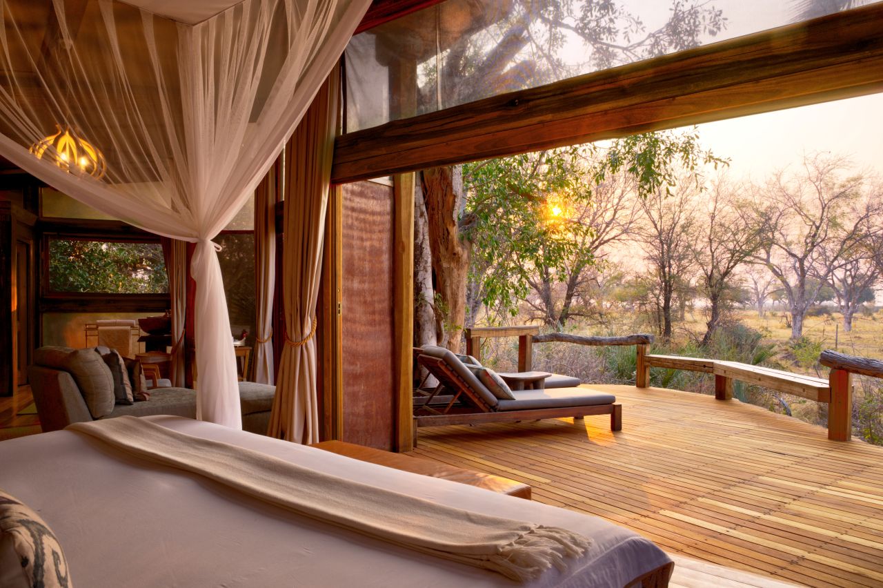 Efter en sista morgonsafari och frukost lämnar du Chobe Game Lodge och flyger med lättflyg till Okavangodeltat – en av världens mest spektakulära naturmiljöer. När planet flyger lågt över deltat ser du hur landskapet förvandlas från torr busksavann till ett glittrande nät av vattenvägar och gröna öar. Du landar på Camp Okavangos privata landningsbana, där din guide väntar för att välkomna dig till denna exklusiva lodge mitt i naturens stilla skönhet. Efter lunch och en stunds vila väntar din första utflykt – kanske en tur i en traditionell mokoro, en urholkad kanot som tyst glider fram mellan näckrosor och vass. Här är det tystnaden som är din följeslagare, och naturen kommer nära på ett sätt som få andra platser i världen kan erbjuda.