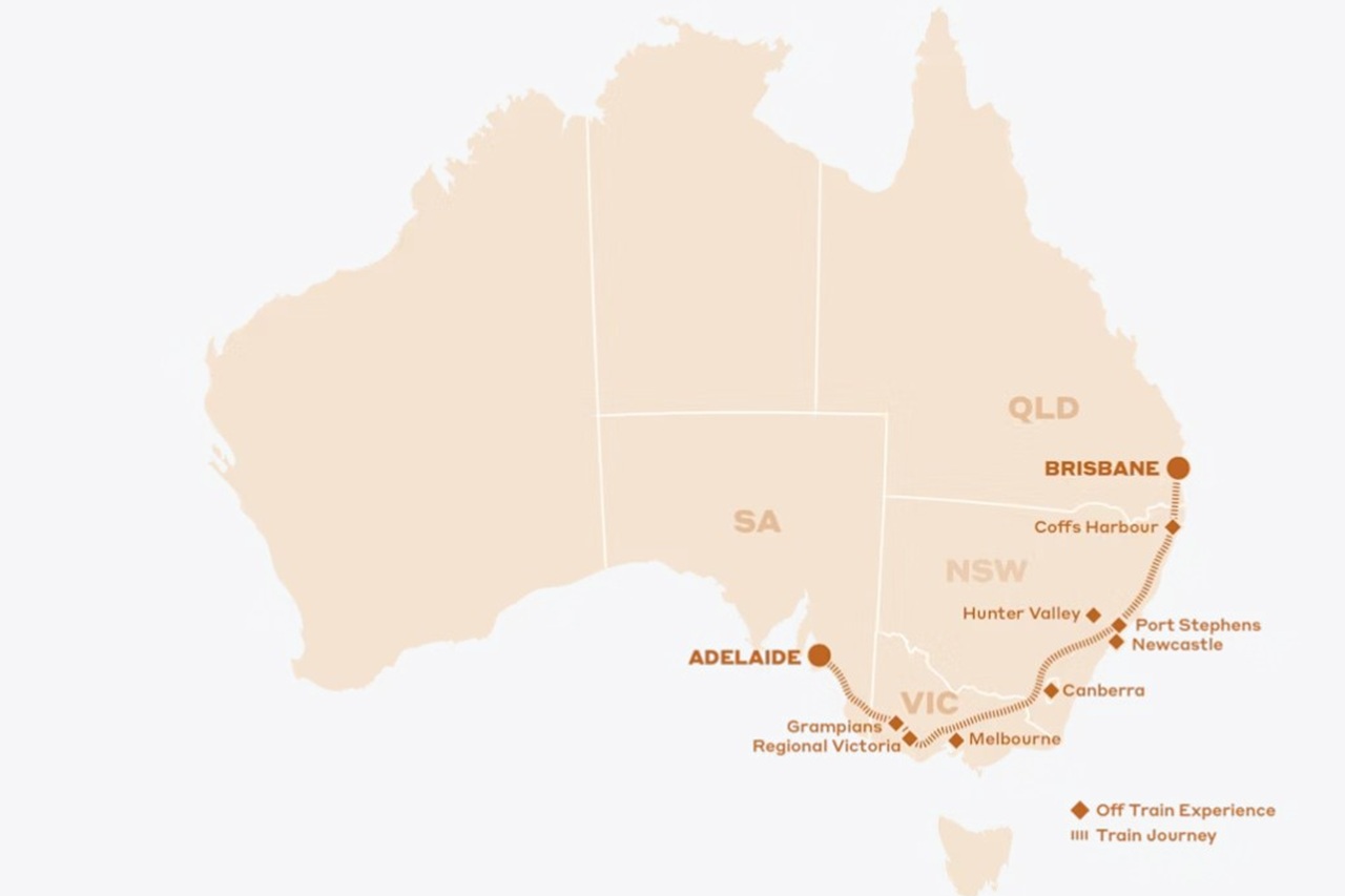 Med sin dramatiska kustlinje, solkyssta stränder, skogsklädda bergstoppar och pulserande huvudstäder erbjuder den spektakulära tågresan mellan Brisbane och Adelaide en upplevelse som inte liknar något annat i Australien.